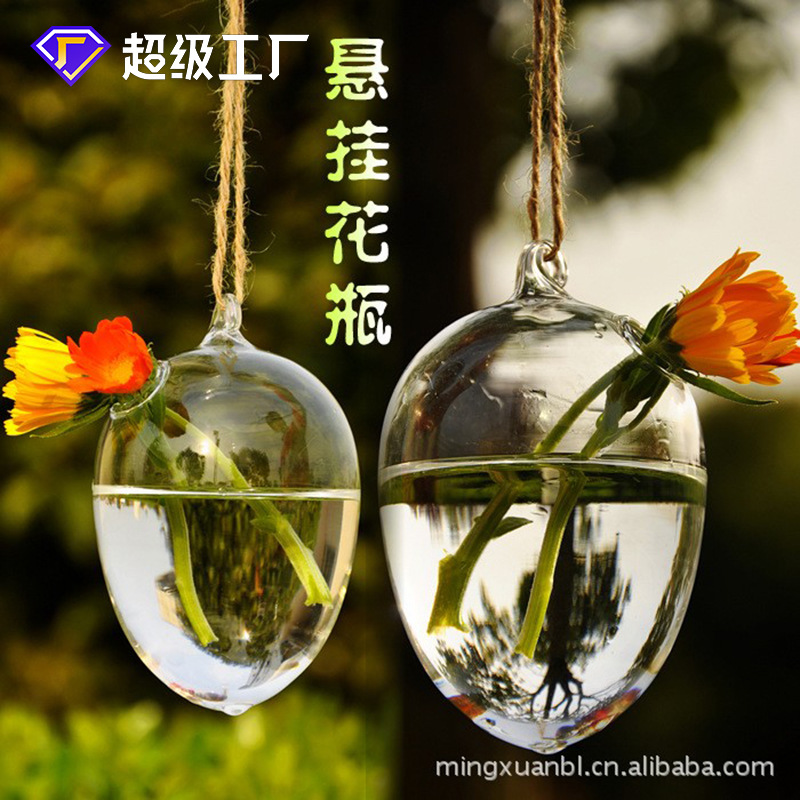 茗軒かわいい吊り下げ式卵形ガラス花瓶水培創意花瓶家庭装飾品