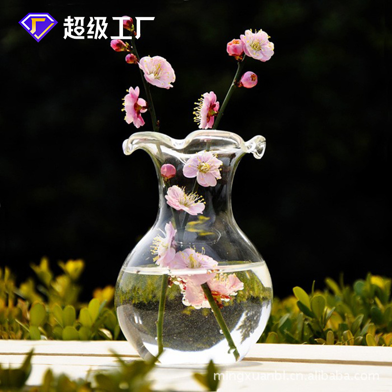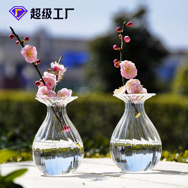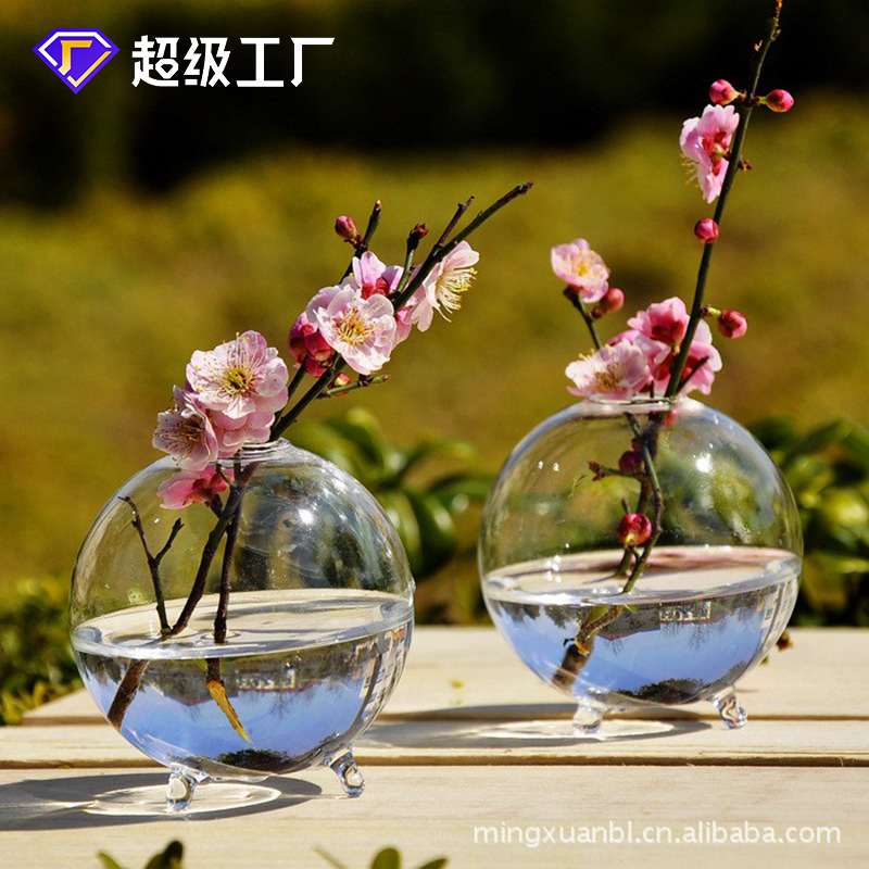 春の息吹円形透明ガラス水培花瓶生け花器オフィス植物装飾メーカー