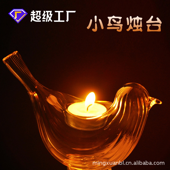 メーカー直売卸売りストライプ小鳥燭台透明ガラス燭台結婚祝いホームアイデア置物