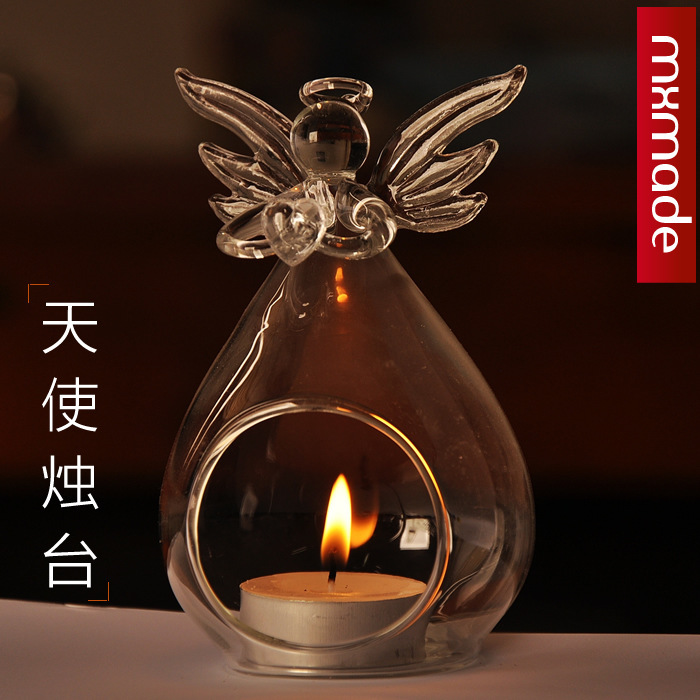 メーカー直販ヨーロッパ式透明ガラス天使燭台ウェディングキャンドル台キャンドルディナー
