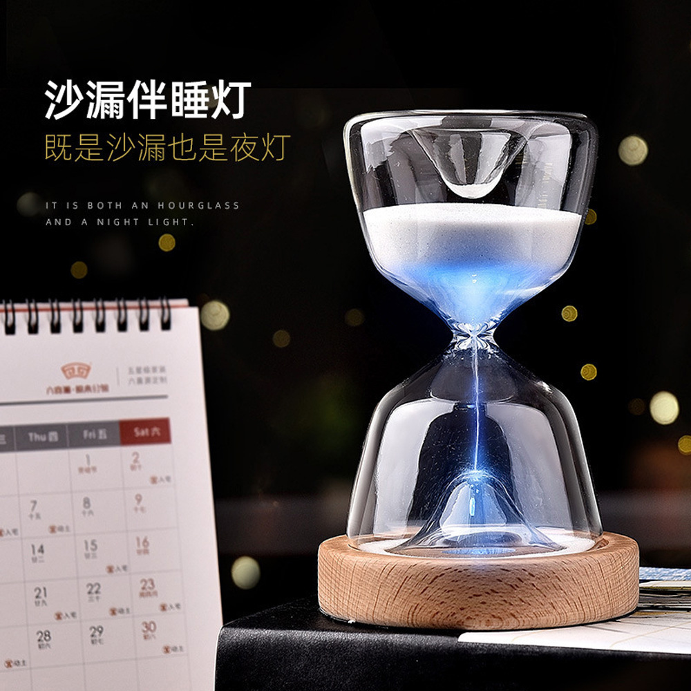 メーカー直販ガラス砂時計発光リモコン15分添寝灯創意置物砂時計ナイトライト