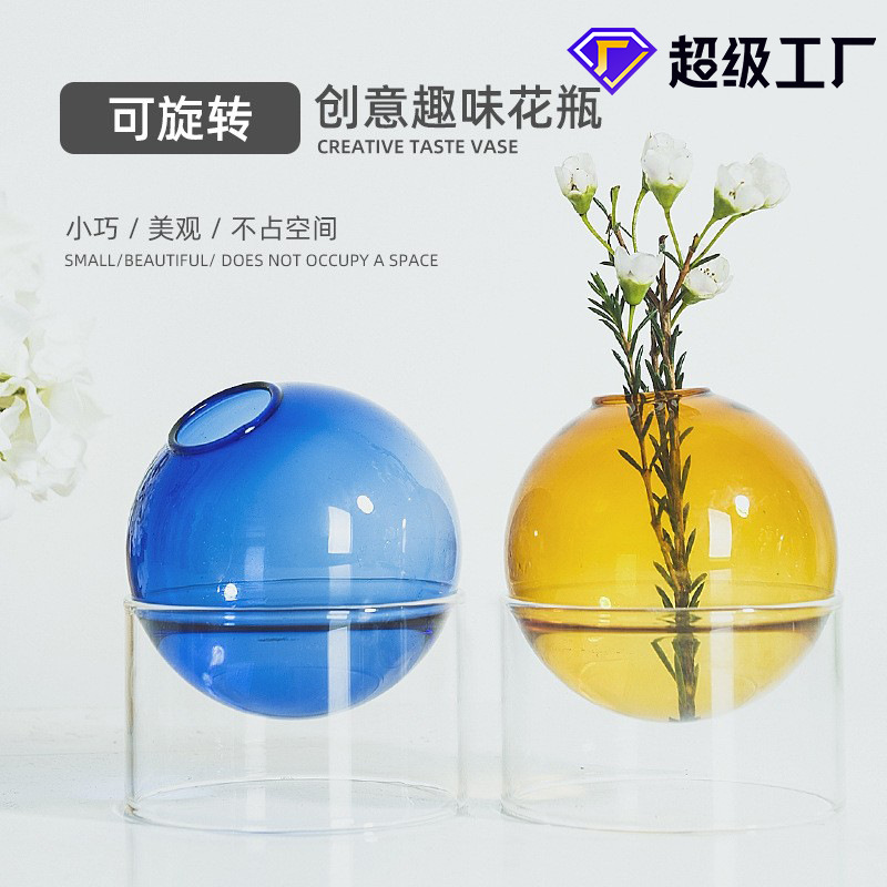 北欧ins風カラーバブル球形ガラス花瓶リビングテーブル生け花飾り火なしアロマボトル置物