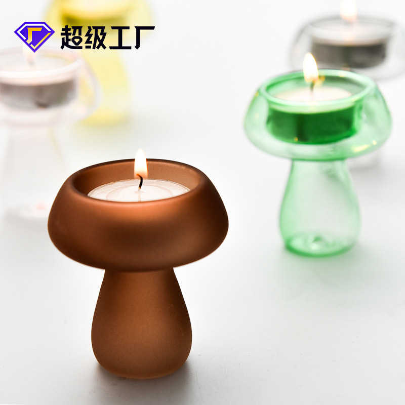 クリエイティブキノコガラス燭台カラー透明キャンドルランプ家庭装飾特色デスクトップ装飾品