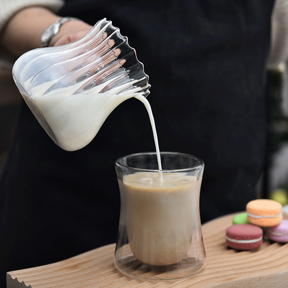 創意的なストライプのミルクポットのコーヒーカップはお茶を入れます。