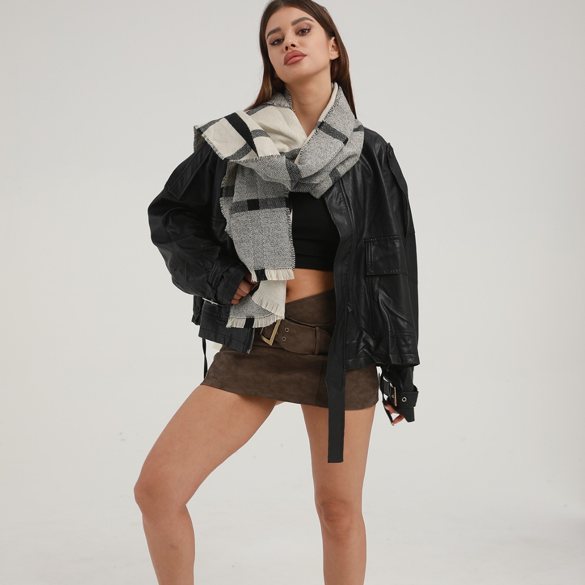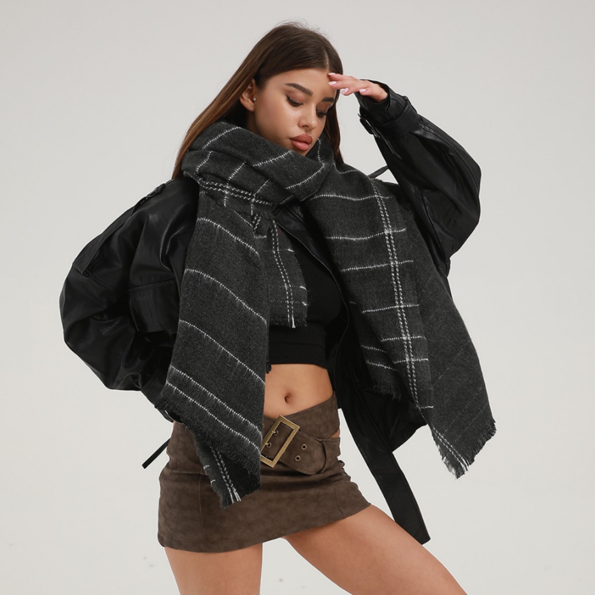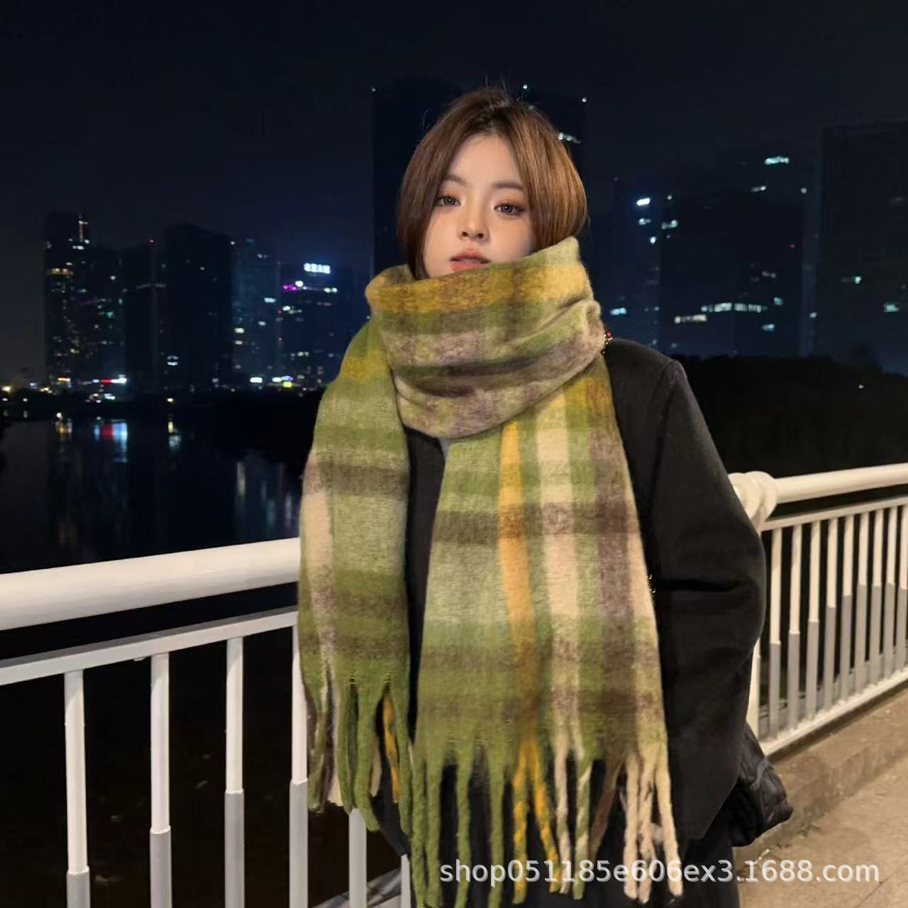 美ラード高級感格子マフラーストール24新作秋冬レトロINS風小紅本同金