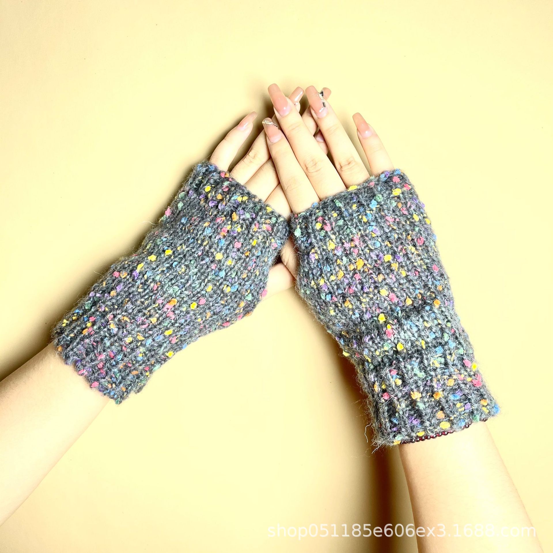 国境を越えたファッションカラーポイント毛糸露指手袋秋冬コーディネート必須