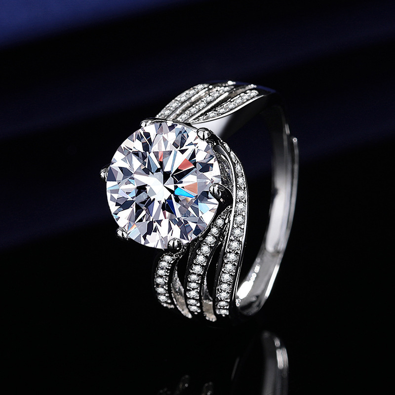 国境を越えた人気の模造モアッサナイトリング、女性用ジルコン結婚指輪、カップルリング、開口部調整可能なリング、ライブブロードキャスト供給