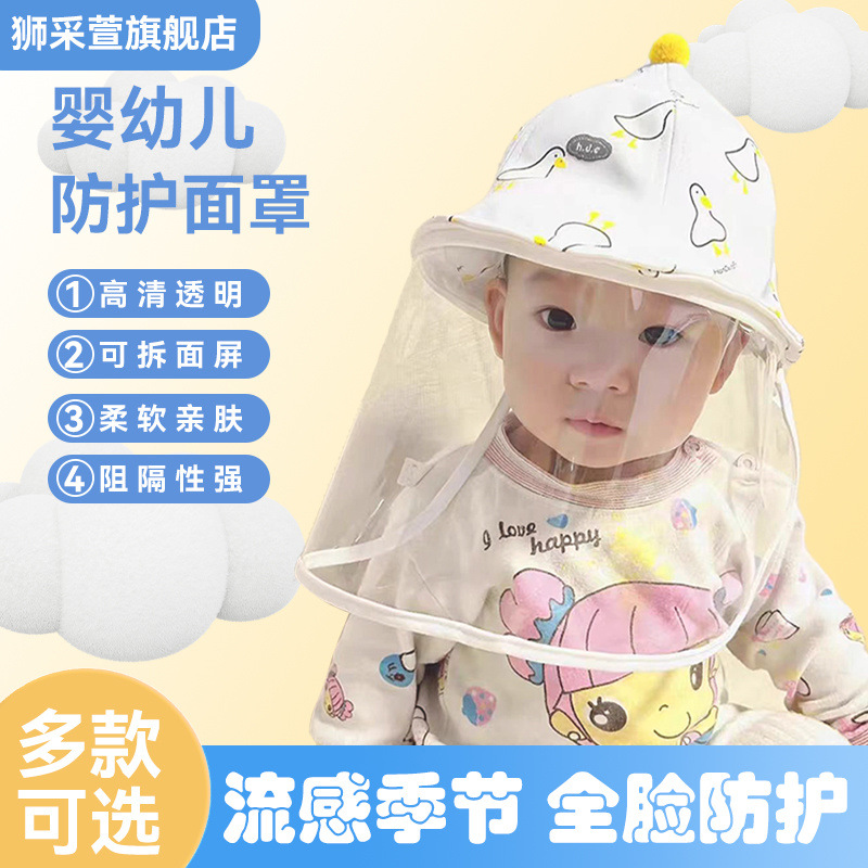 新生児保護マスク0-3小月齢赤ちゃんが病院に出てワクチンを接種し、帽子を隔ててファスナーを引っ張る