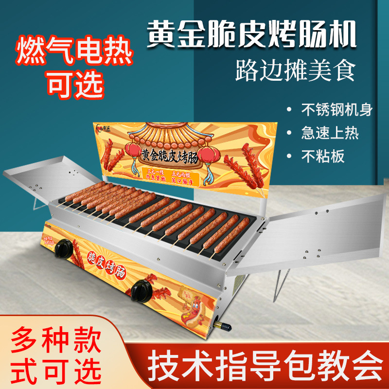 黄金の脆い皮の腸の焼き機の露店の商用ガスのネットの赤い夜市はデンプンの腸の焼き機の手で自動的にホットドッグのストーブを焼きます。