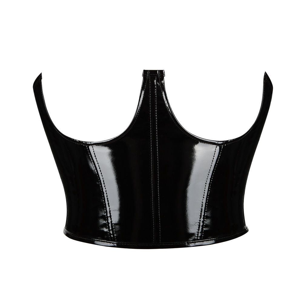 黒の明るい皮の胸のシェイプアップの服puネットの赤い胸の上着は腰にぴったりしています。