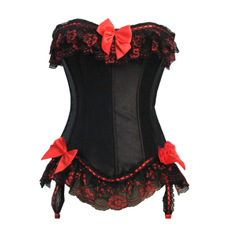 欧米のボディスーツのセクシーなレースの宮廷はボディスーツの赤い蝶結びのガーターの趣味のcorsetを作ります。
