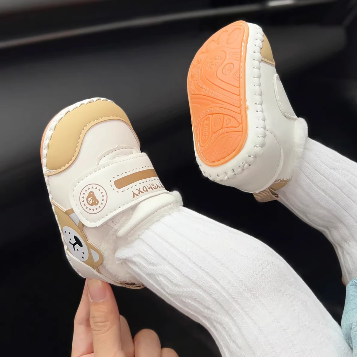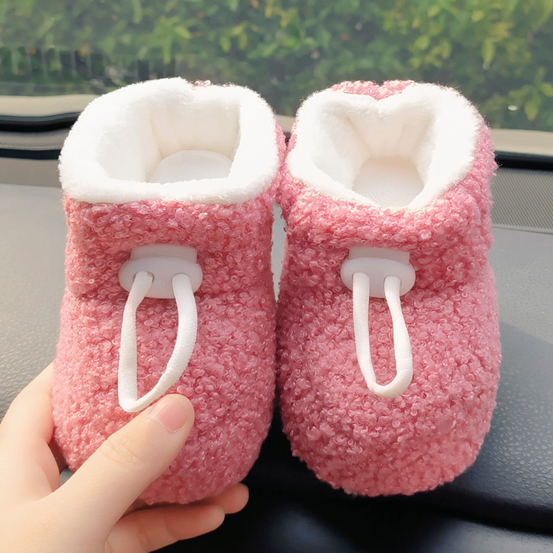 秋冬の新入生の赤ちゃんの靴の赤ちゃんの柔らかい底の学歩の靴は保温します3-6-12ヶ月はベルベットと厚い綿の靴を落とします。