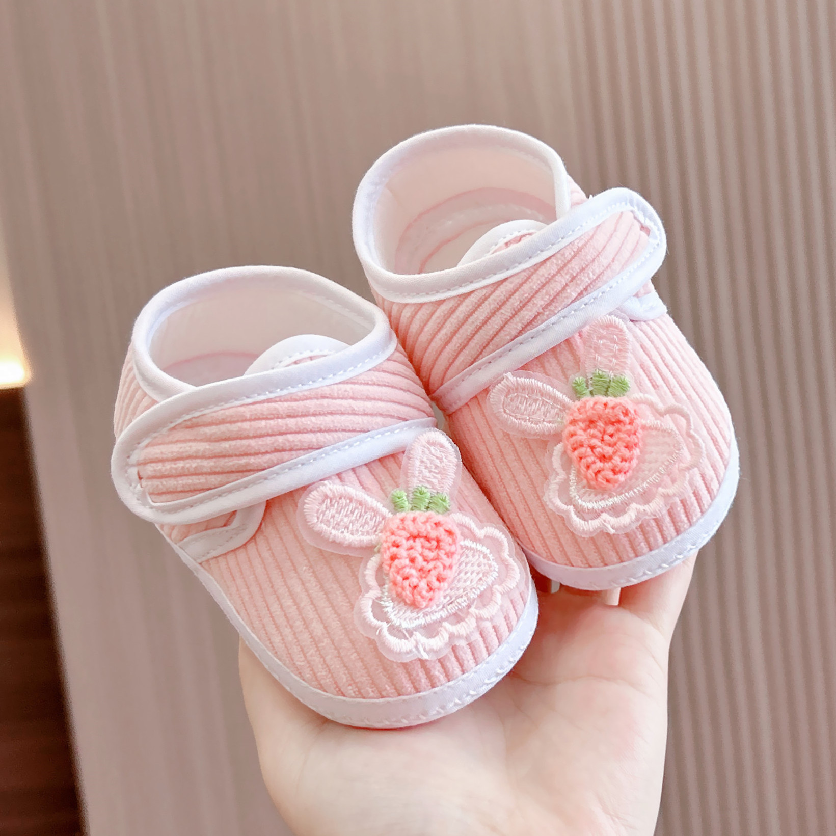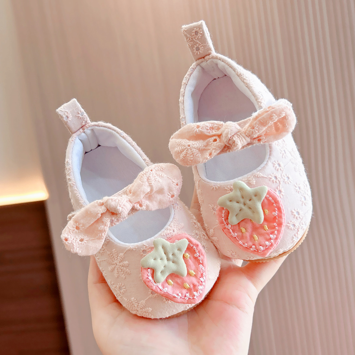 新しい女性の赤ちゃんの王女の靴0-1歳の純綿の王女のイチゴの百日の歳の小さい香りの風の柔らかいゴムの底の学歩の靴2