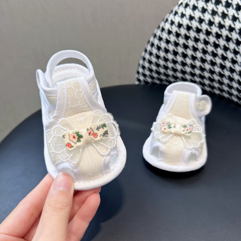 ベビーシューズ夏スタイル 0-6-12 ヶ月幼児サンダルソフトソールフロントシューズプリンセス布靴 1 歳のベビーシューズ女性