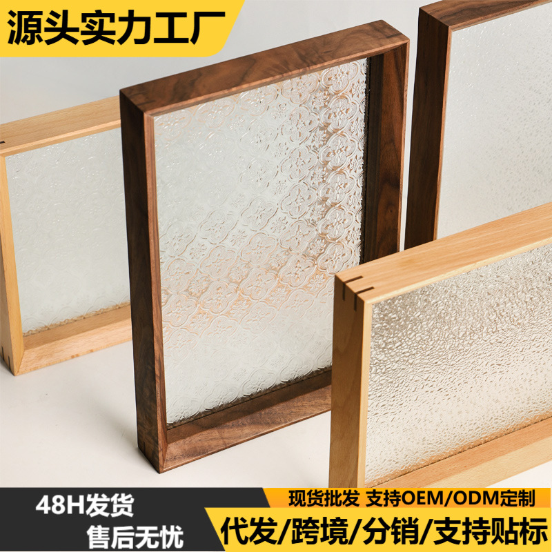 日本式の軽くて豪華なレトロなガラスのトレーの黒胡桃の木の実木の収納盤の木製のお茶の皿の家庭の収納の置物