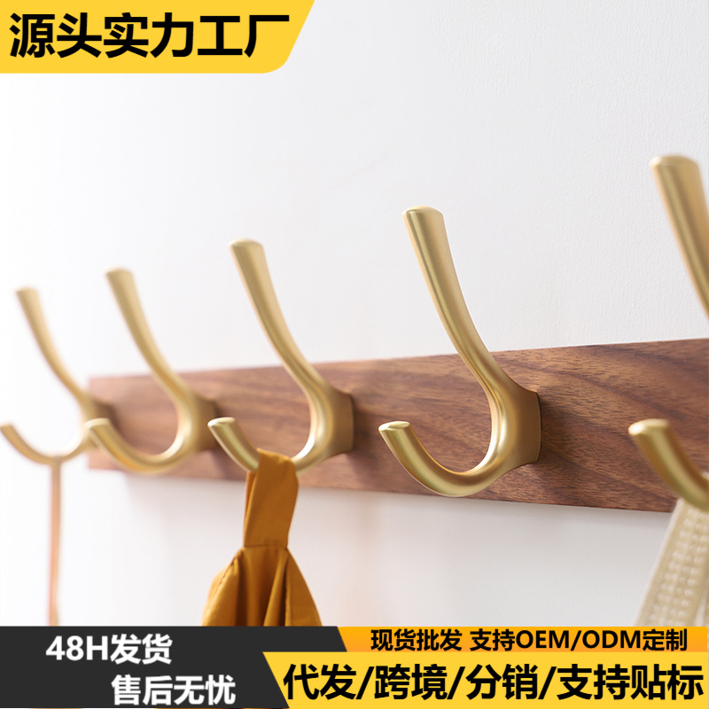 クリエイティブフックリビングルーム寝室玄関壁掛けハンガー黒胡桃実木真鍮棚は穴を開けることができます。