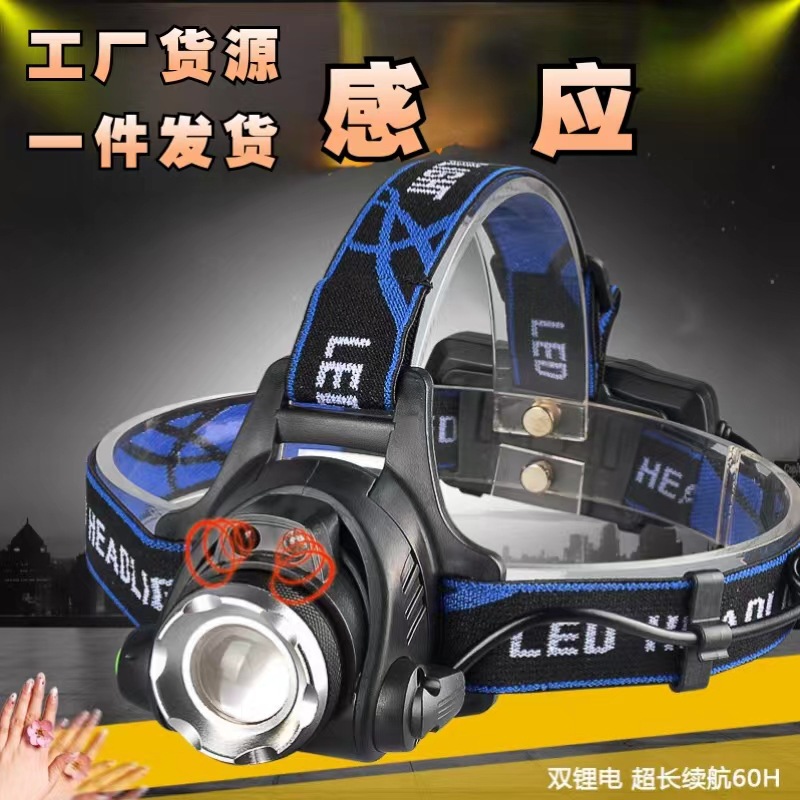 アウトドアクロスボーダーUSB釣りセンサーライトヘッド装着式強光充電ヘッドライトズーム登山夜釣りライト卸売り