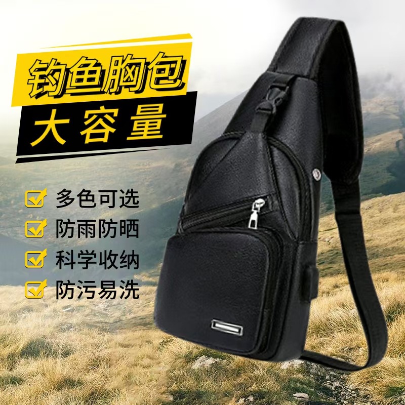 アウトドア釣り男性カバンusb充電クロスボーダー欧米PU胸カバンシンプルメンズuカジュアルファッションショルダーバッグ男性モデル