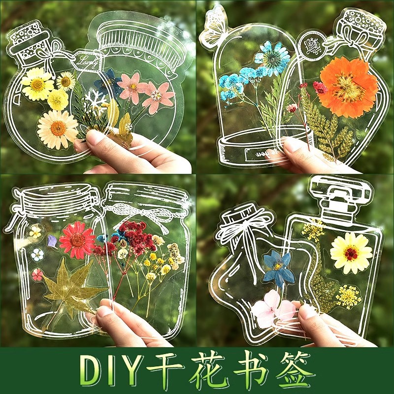 ドライ花しおり自作diy手作り材料エンボス透明瓶標本卒業プレゼント学生文創創意