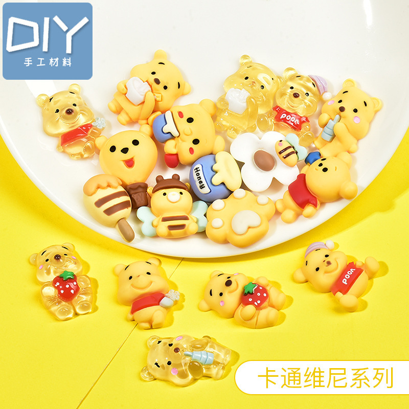 Diy水晶透明襟付き熊クリームゴムdiy手作り材料福袋自作携帯ケースヘアピンアクセサリー小配