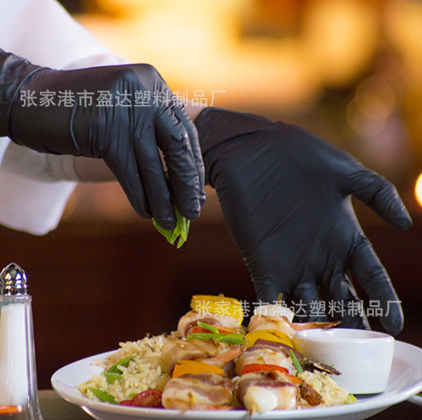 工場向け欧米風黒色TPE手袋、伸縮性のあるPVC風使い捨て携帯用保護手袋、油汚れ防止、キッチン専用