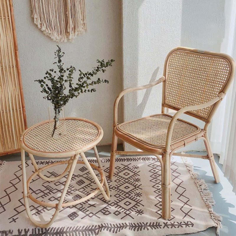 籐編み椅子背もたれ日本式insベランダレジャー室内シングルティーセットインドネシア天然真藤寂