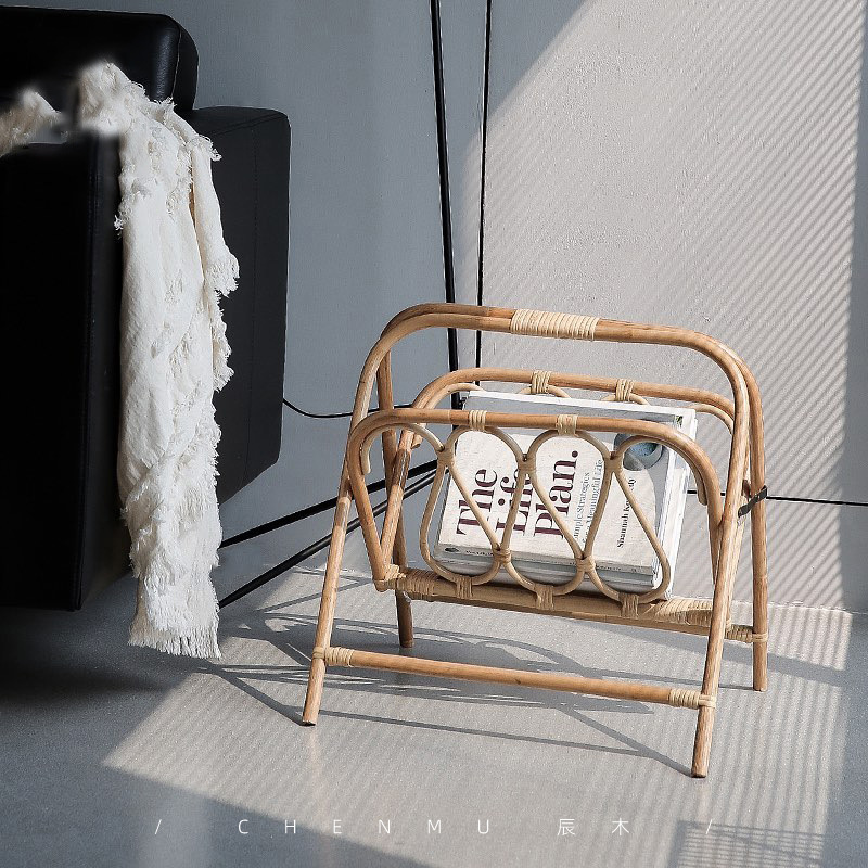 日本式インスタ中古マガジンラック籐编み新闻ラック折りたたみ収纳ラック床置きシンプルクリエイティブ真藤新闻ラック