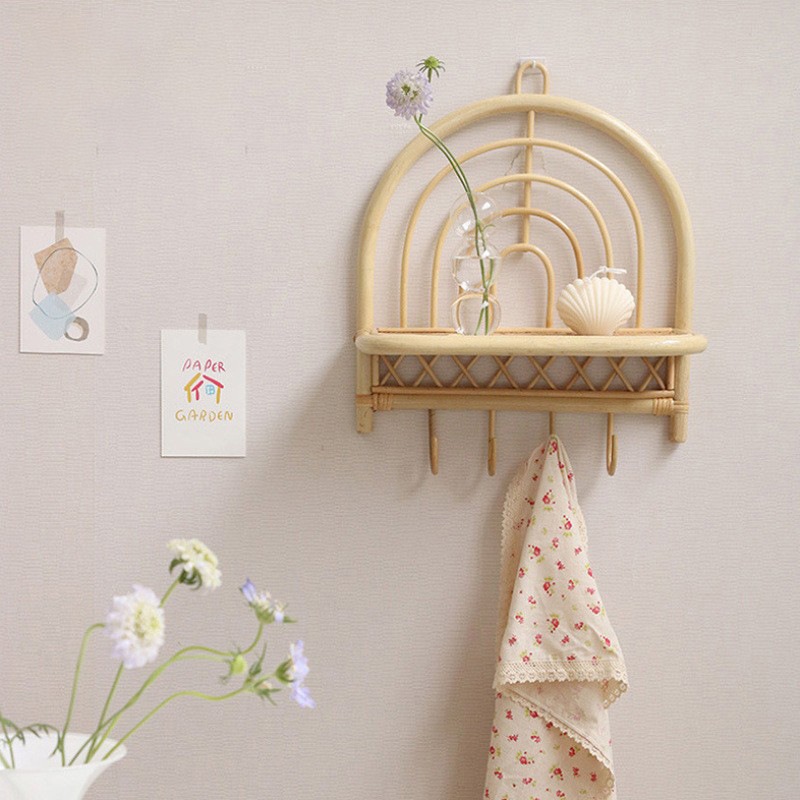 新中国式ハンガーフック藤編物棚北欧ins復古風民宿寝室創意服帽子収納フック