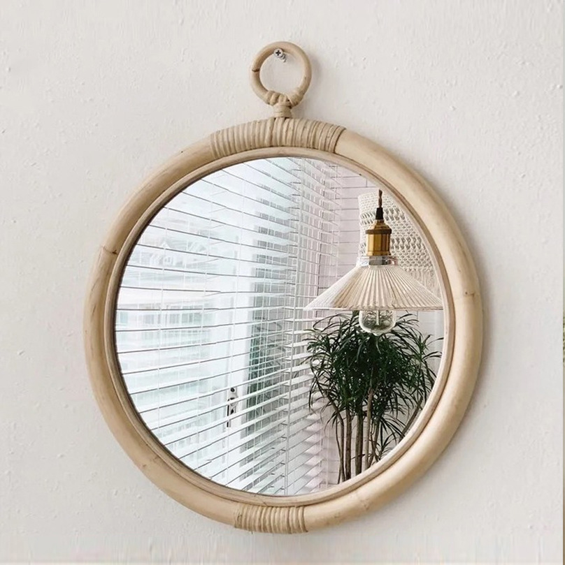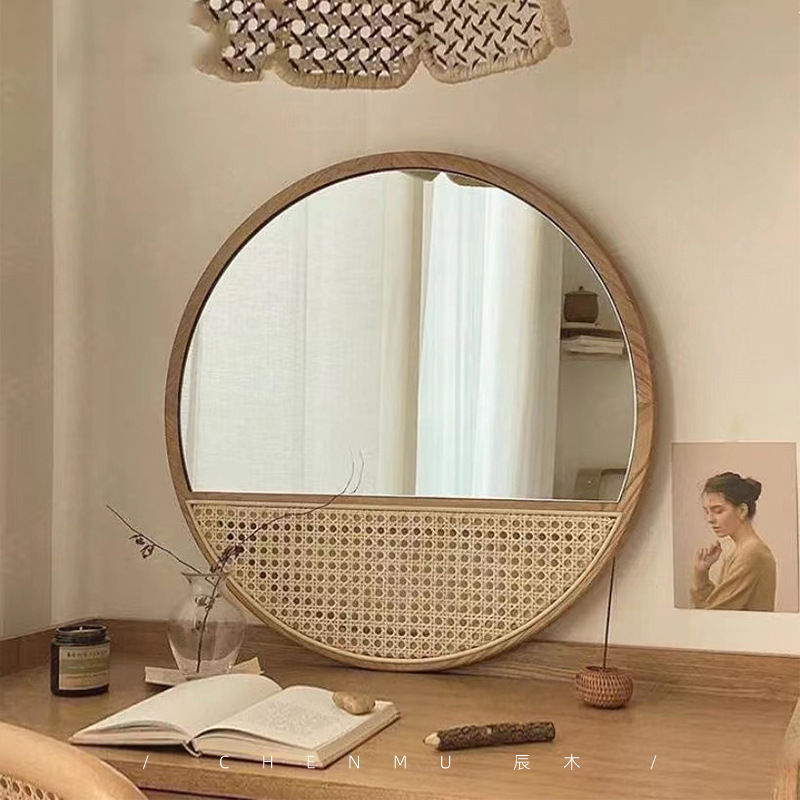 北欧ins文芸円形復古風小藤編鏡壁感家庭用民宿実木化粧