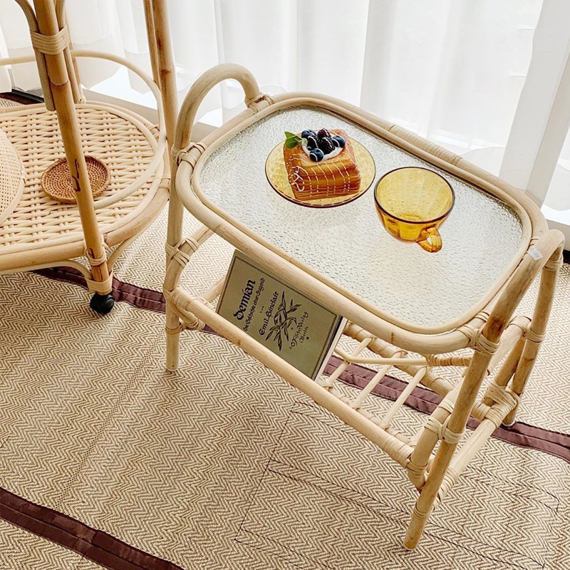 日本式ins藤編小茶何収納サイドの手作りインドネシアのシンプルなサイドテーブルのベッドの頭の棚の韓国式の窓の民宿