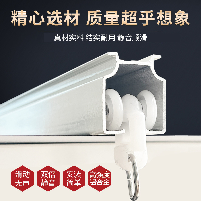 新品アルミ合金厚手静音カーテンレールストレート角型スライドレール滑走路モノレールカーテンロッドトップローディングダブルレール