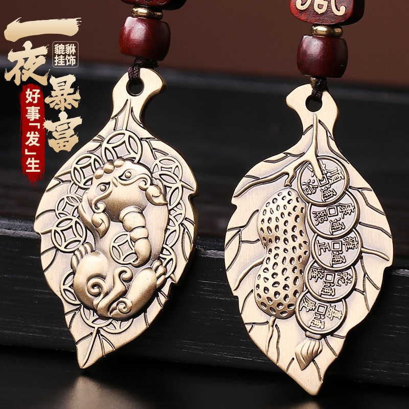 富と宝を引き寄せる真鍮の貔貅、安全な出入り、男性用カーペンダント、高級バックミラーペンダント、車内卸売