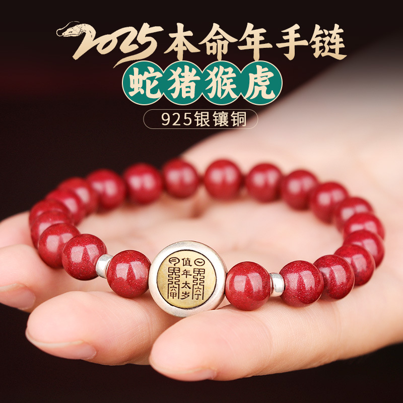 道家太歳ブレスレット2025蛇年本命年朱砂手串平安転運珠紅手縄瑪瑙黒曜石