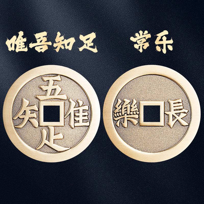 真鍮製知足常楽花钱キーホルダー2026年新作平安吉祥車飾り銭貨古銭卸売