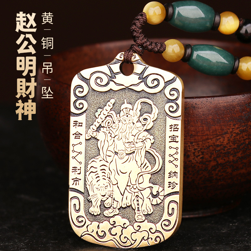 道家純黄銅趙公明ペンダント招財小物武財神爺ネックレストークン携帯ストラップ男卸売り