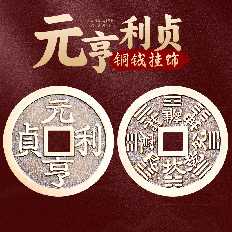 道家黄銅元亨利貞銅銭ペンダント明後日ゴシップ金ネックレス嫌勝銭平安キーホルダーペンダント