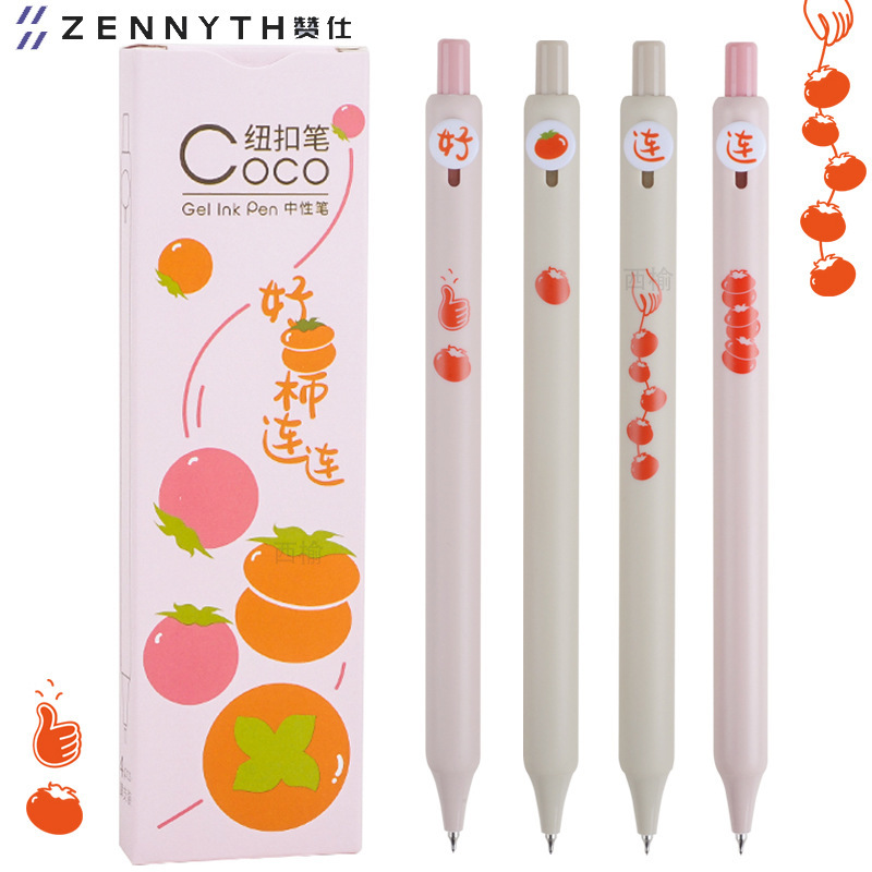 賛仕ボタンペン好柿連押し中性筆創意高颜値サインペン双珠CS速乾ブラシ問題ペン