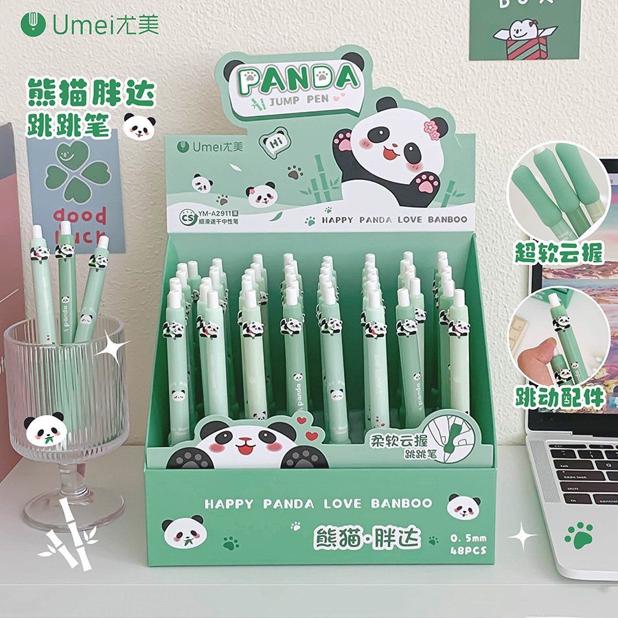 尤美パンダのパッチは中性ペンを押して清新で可愛いです。学生文房具CS頭速乾黒サインペン黒です。