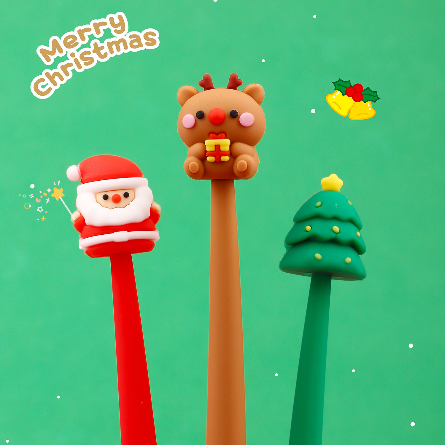 可奇サンタクロースの柔らかいシリコンの揺れるペンのアイデアの中性のペンの漫画のヘラジカの形の水筆のクリスマスツリーの黒いペン