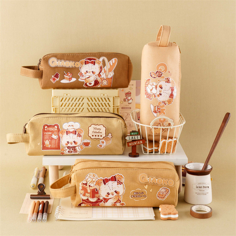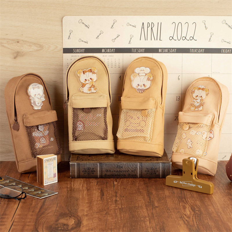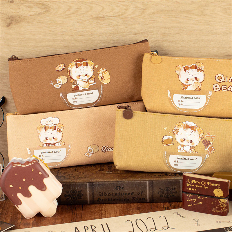 モックのカバンの筆袋の熊の高い顔の価値の文房具の袋のかわいい漫画のキャンバスの筆箱の大容量の学生の収納袋
