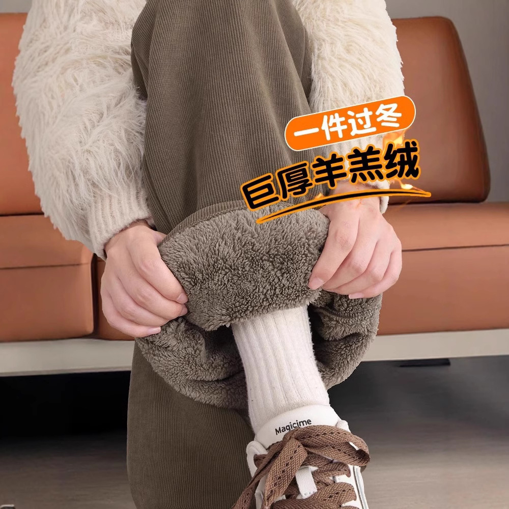 子羊ベルベットワイドレッグパンツ女性のための冬 2025 新しいシェニールプラスベルベット肥厚アウターコットンパンツスポーツストレートパンツ