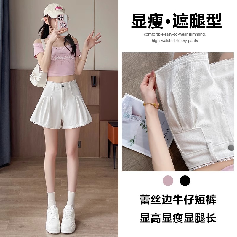 ホワイトレースデニムショートパンツレディース夏薄い2025新しいトレンディなスリムデザインルーズショートパンツ