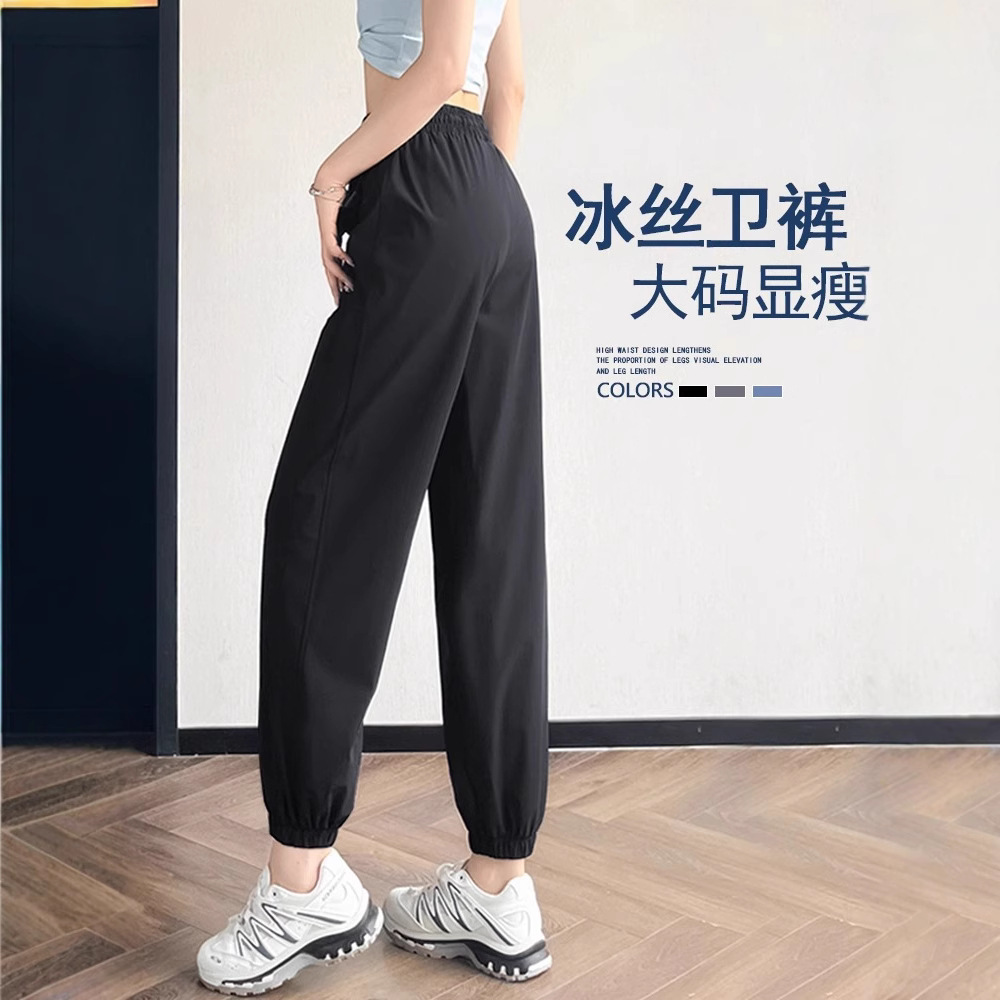 プラスサイズのアイスシルクスウェットパンツ、女性用夏用薄手パンツ、太ったMM痩身、ゆったりレギンスハーレム日焼け止め速乾スポーツパンツ