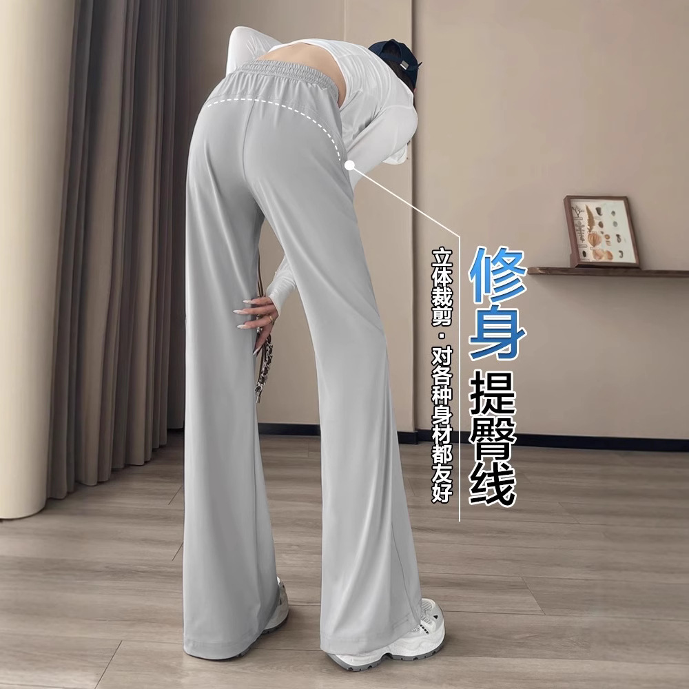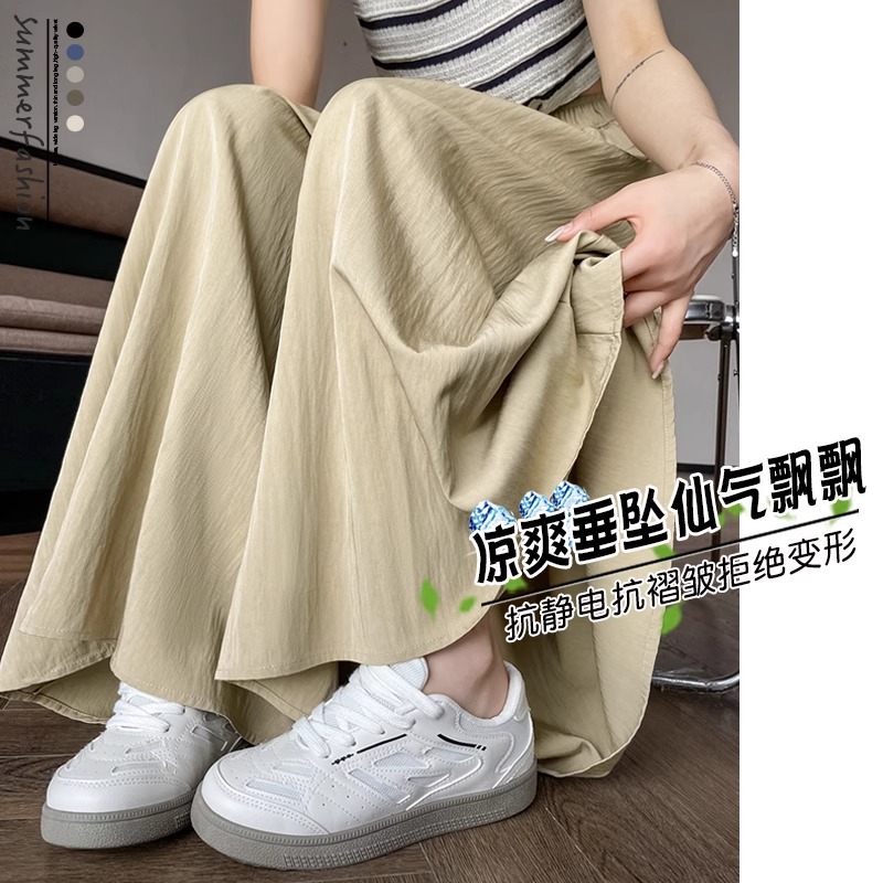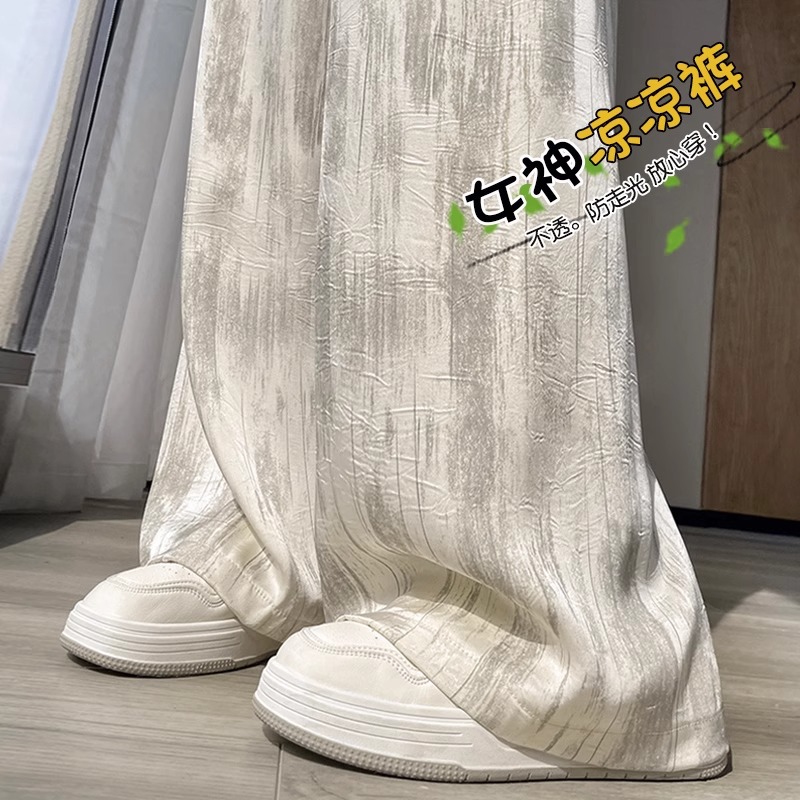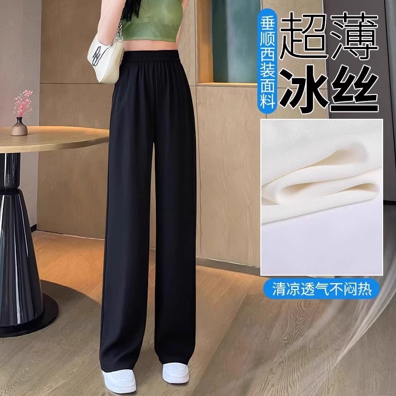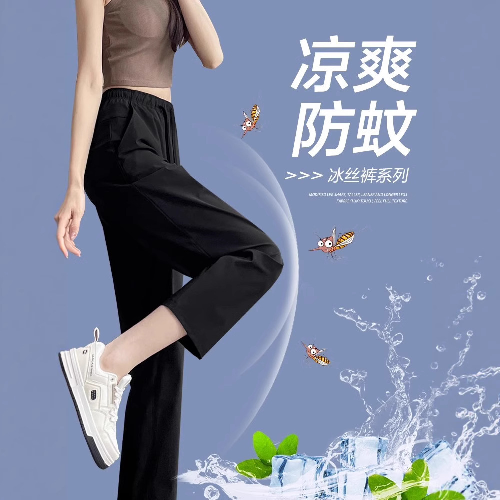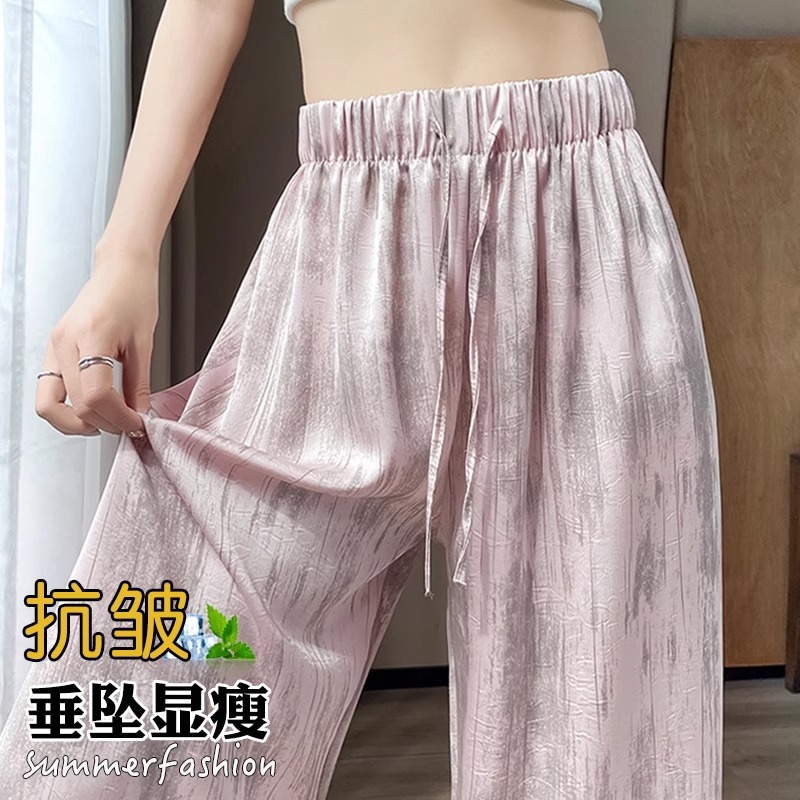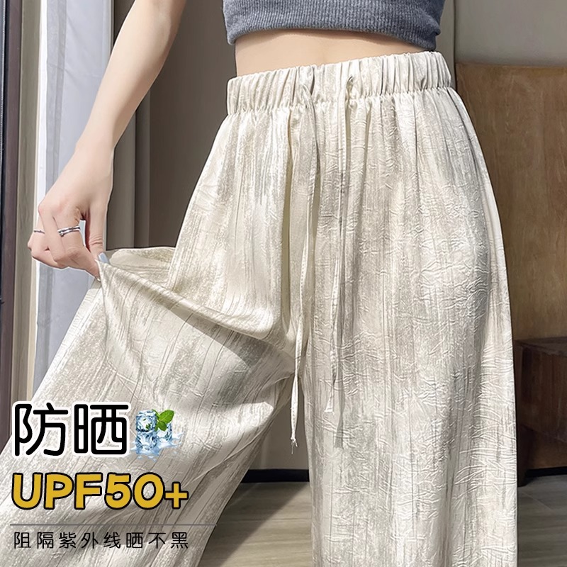 アイスシルクワイドレッグパンツ女性の夏の薄いパンツ 2025 新しいクールカジュアルパンツハイウエストストレート日焼け止めパンツ
