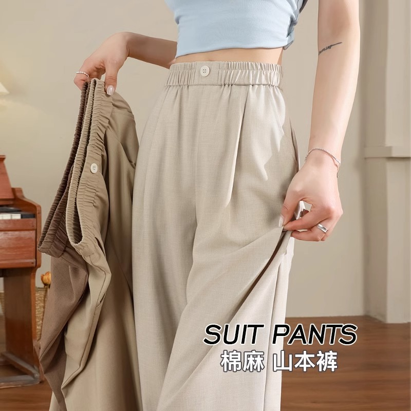 亜麻の広脚のズボンの女性の夏の薄いタイプの狭い版の高腰のまっすぐな筒の垂れ下がった感の小さい背の氷の糸のハイエンドの綿麻の山本のズボン