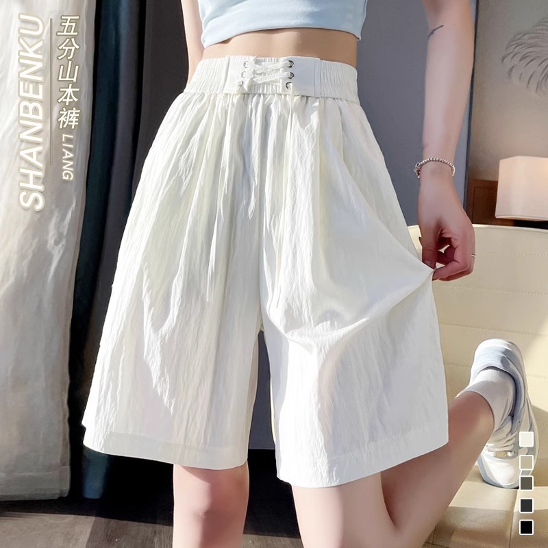 山本ショーツ レディース 夏 薄手 2025 新作 ハイウエスト ワイドレッグ アウター Aライン スカート パンツ カジュアル アイスシルク 5点パンツ