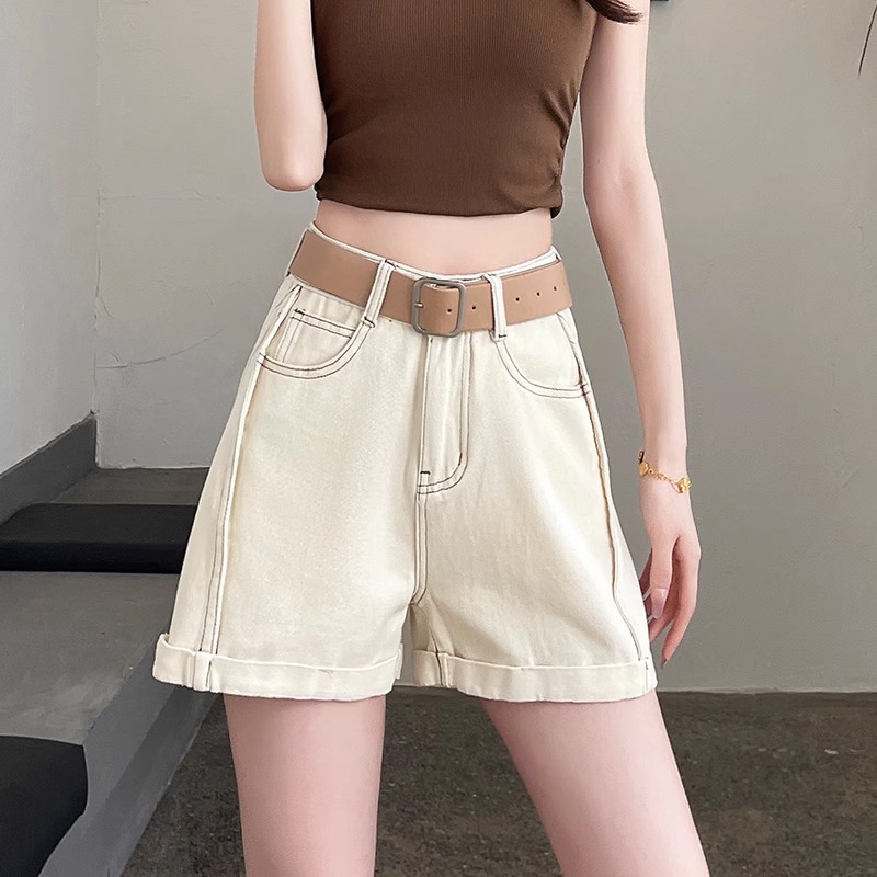 アプリコットデニムショートパンツ女性用 2025 夏薄い A ラインルーズカバー股オフホワイトカーリングクォーターパンツホットガールホットパンツ