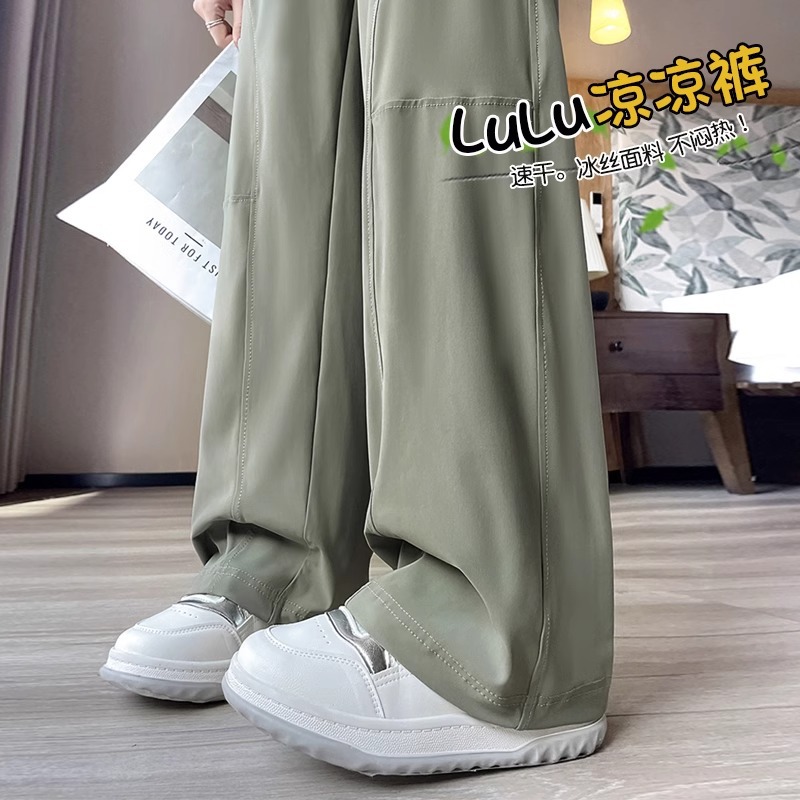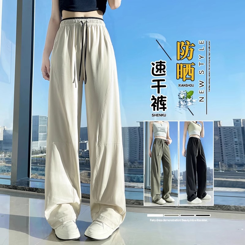 アイススポーツズボンの女性の小さい夏の薄いタイプの速乾の通気性の2025新型のまっすぐな筒の狭い版のバナナの広い足のズボン