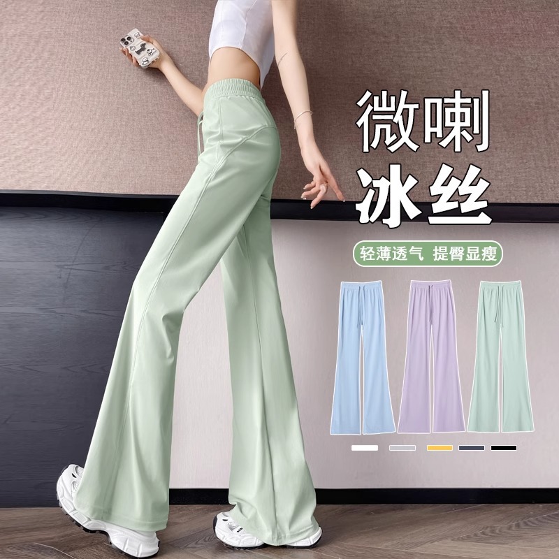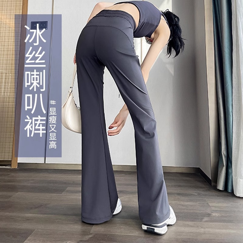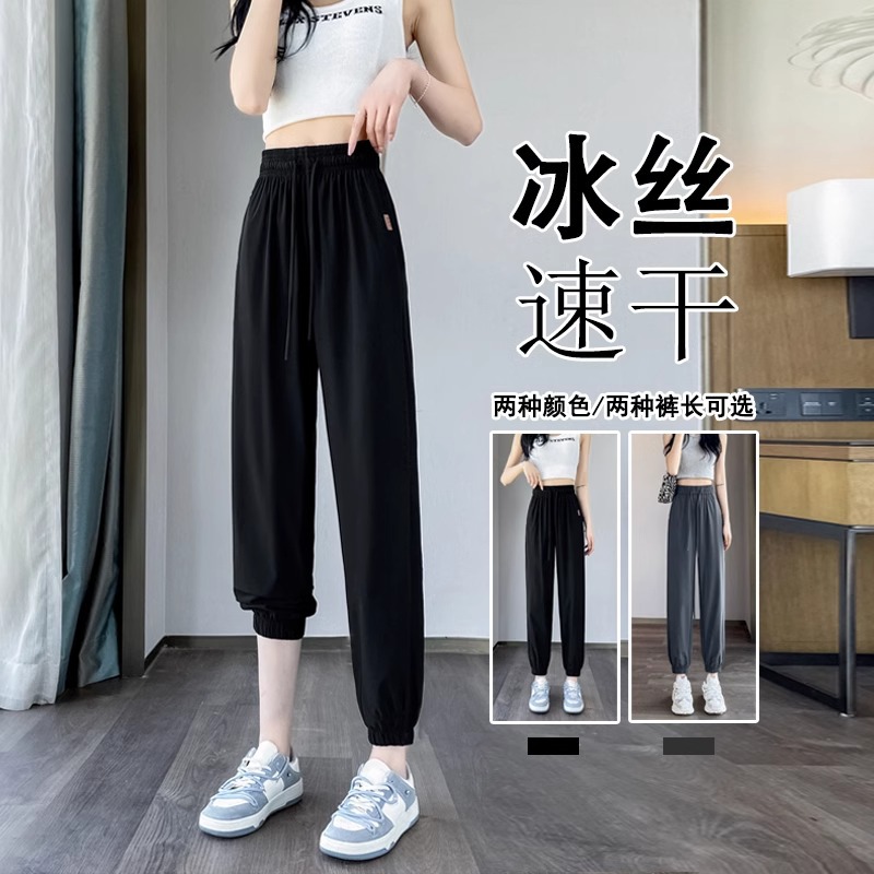 微ラッパズボンの女性の夏の2025の新型の氷の糸のヨガのスポーツのズボンの夏の薄いタイプの衛のズボンの速乾のレジャーのズボン