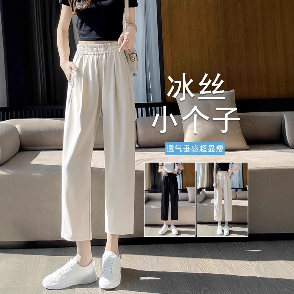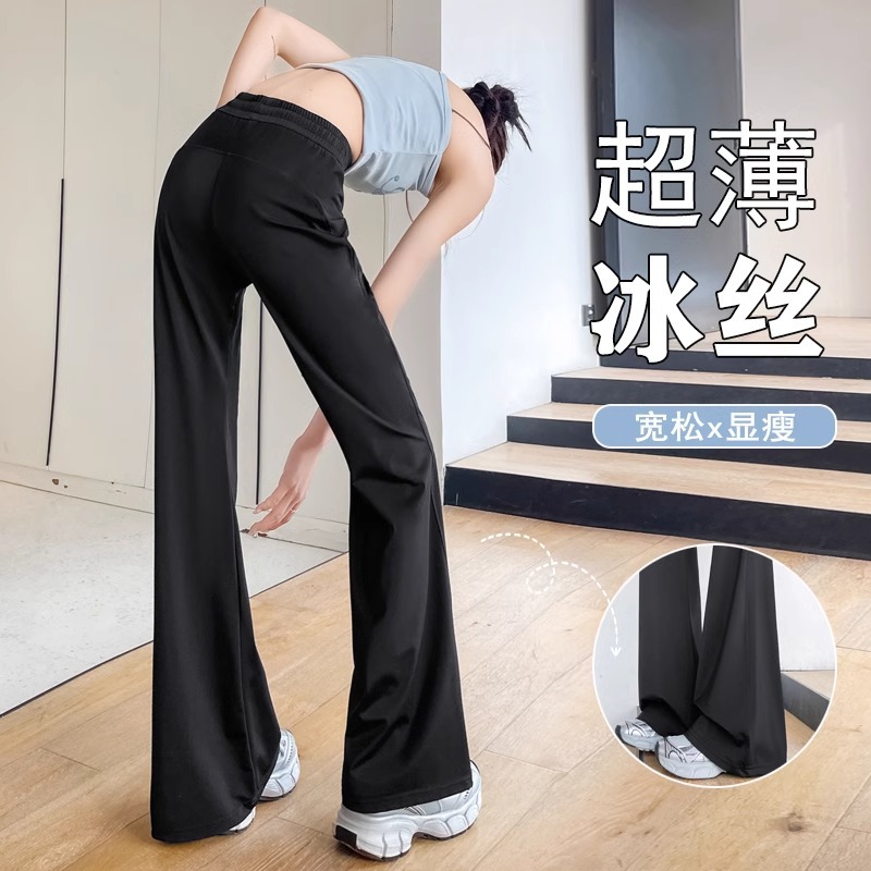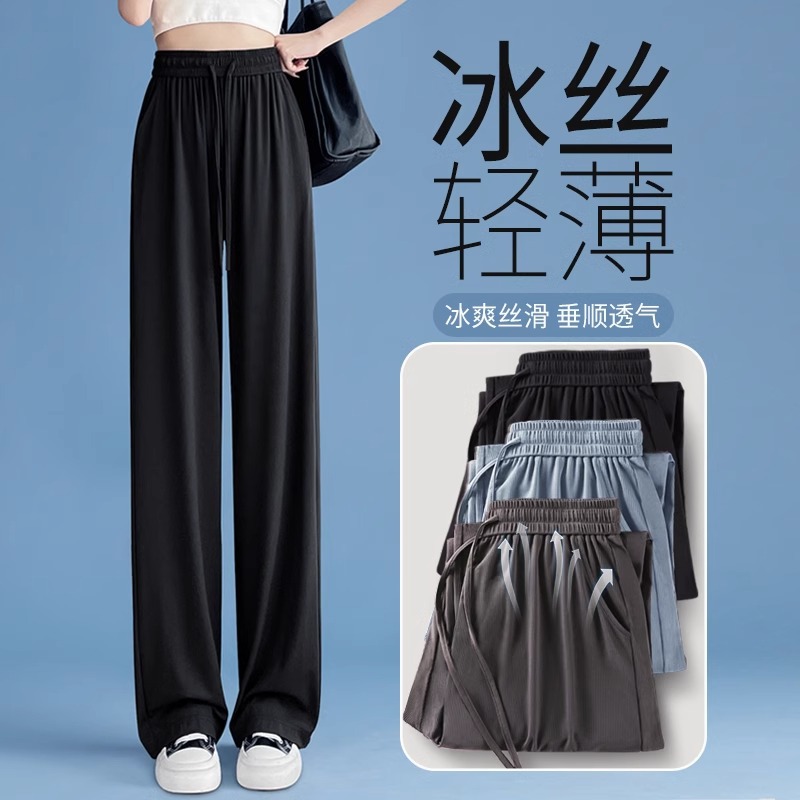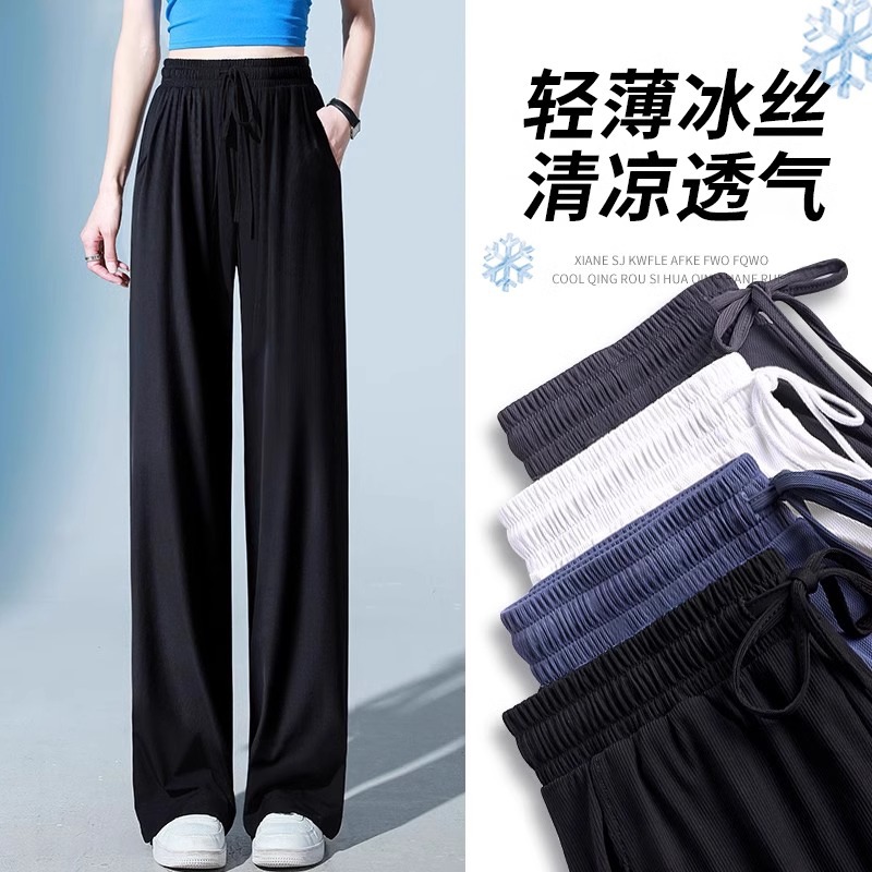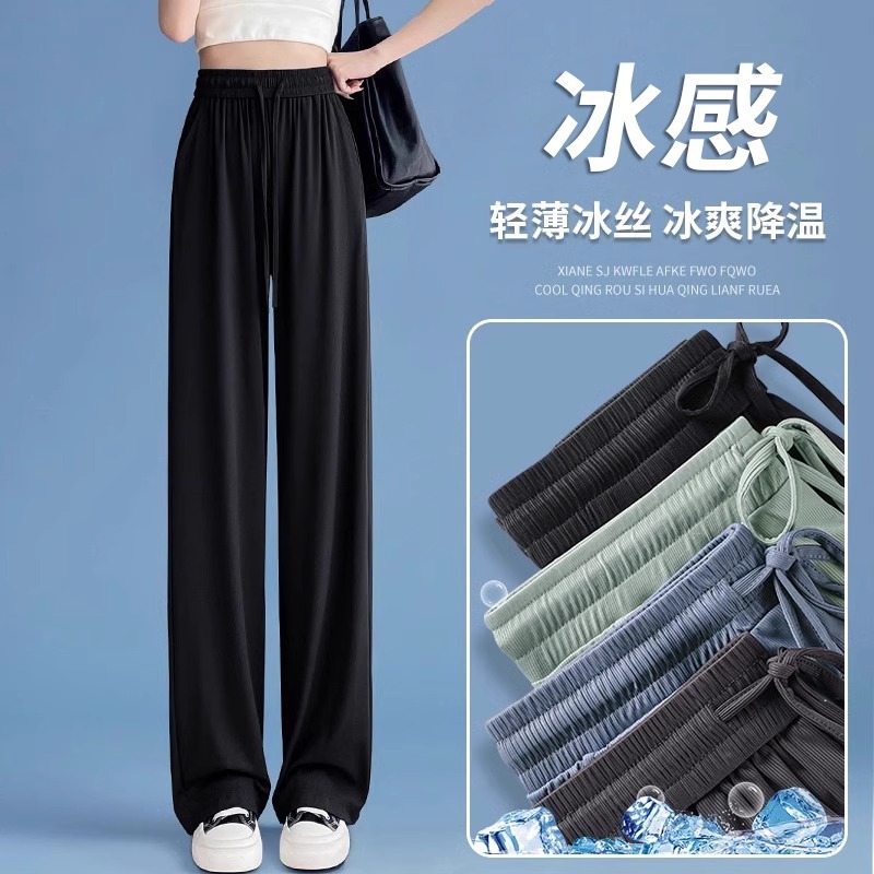 氷糸広脚ズボン女子夏の薄手ズボン2025新型涼やかカジュアルズボン高腰垂感ストレート日焼け止めズボン